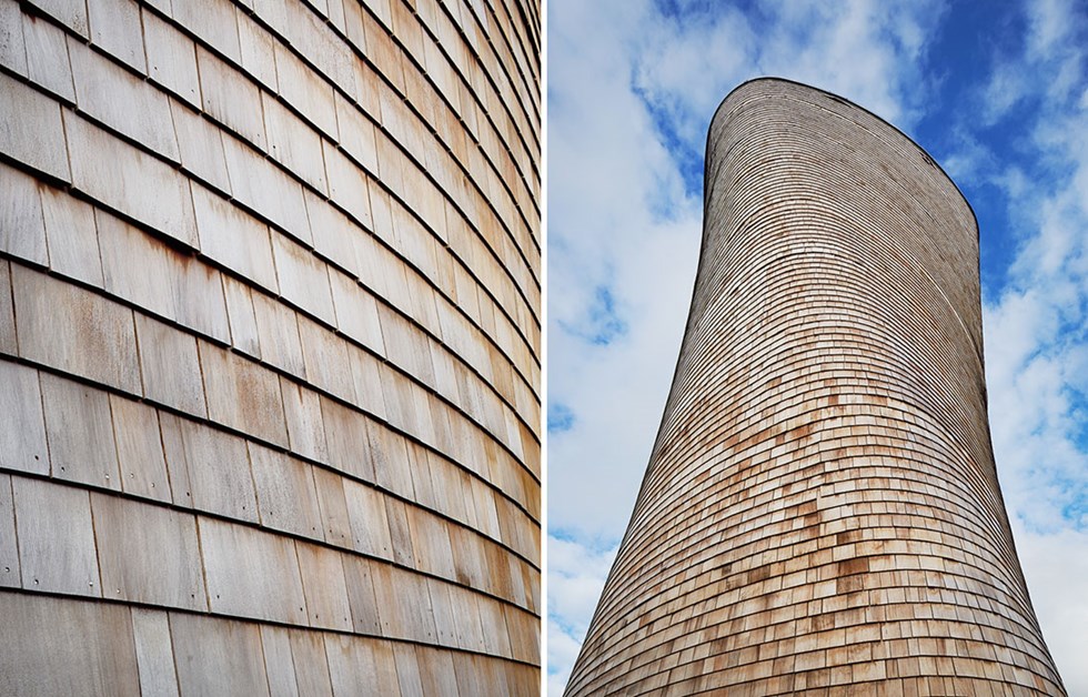 The function of the tower is to vent air from the road tunnels of the North Link highway. With the tower located in the Royal National City Park, the design and its relation to the surrounding parkland were important, which is why the decision was made early on that the tower should be built in wood. This also sets the ventilation tower apart, challenging the general understanding of what technical functions usually look like. The tower is 20 metres tall and based around a super triangle, which twists upwards about its own axis. The triangular shape is determined by the air flow, which is improved by the aerodynamic design.