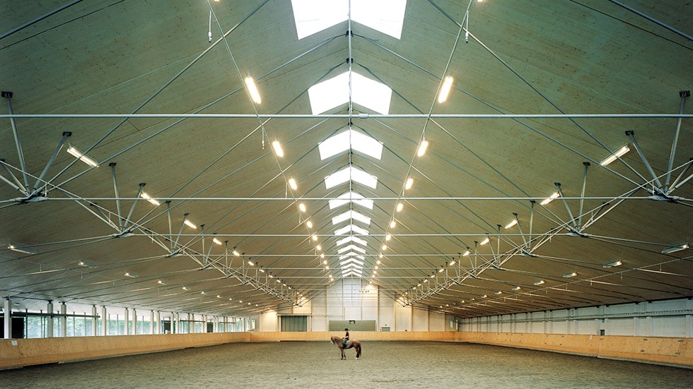 Nominated for the Swedish Wood Award in 2008, Flyinge Riding School is a fine example of how a large hangar-like structure can be erected in a historically sensitive setting and still add something to the landscape. The indoor arena, which is almost entirely made from wood, showcases innovative architecture influenced by local building traditions. Architect: AIX Arkitekter AB.