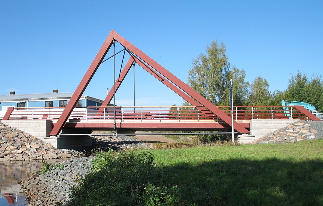 The Pythagoras wooden bridge over Virserumsån on route 672 is designed for full traffic loads.