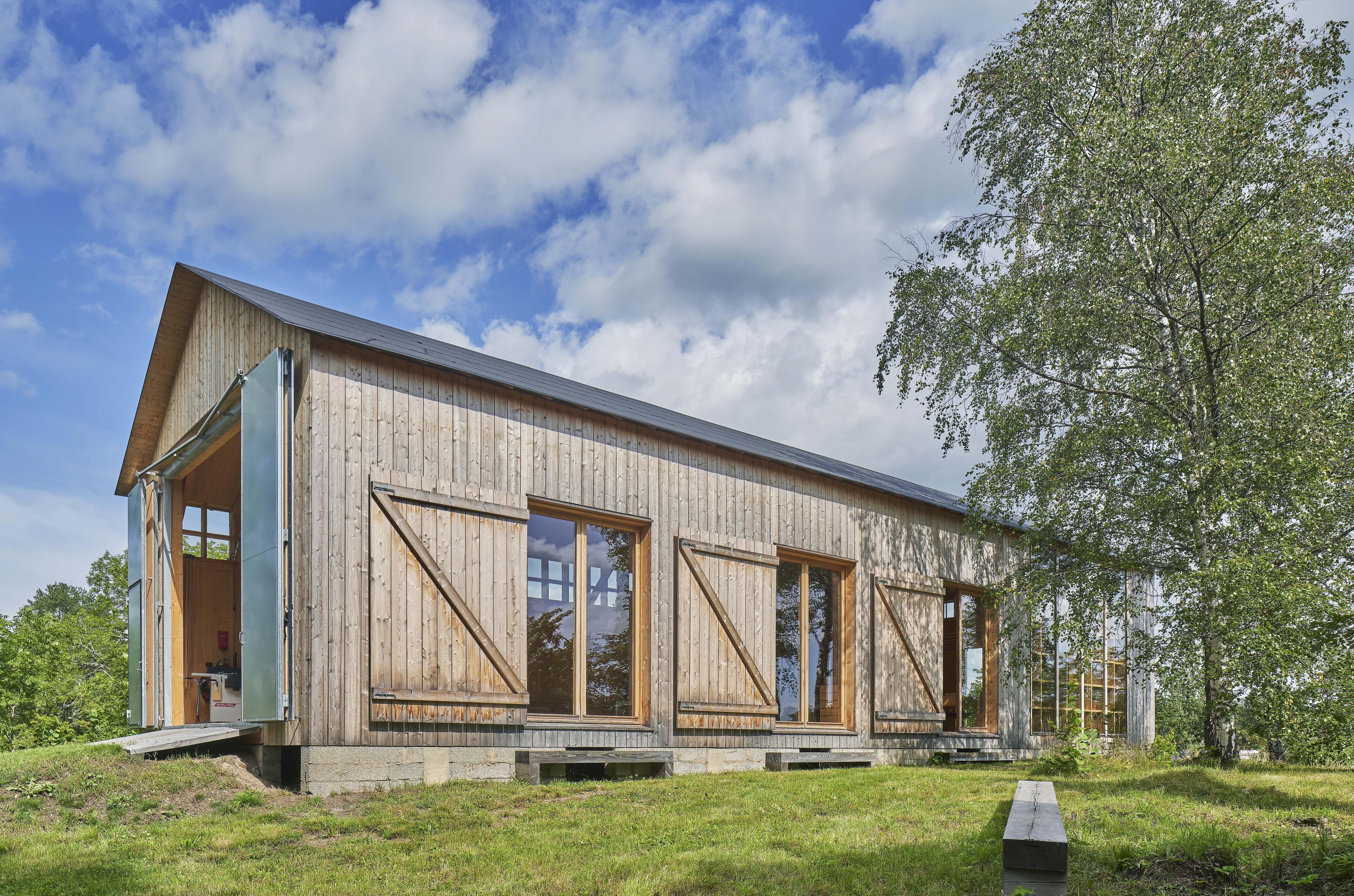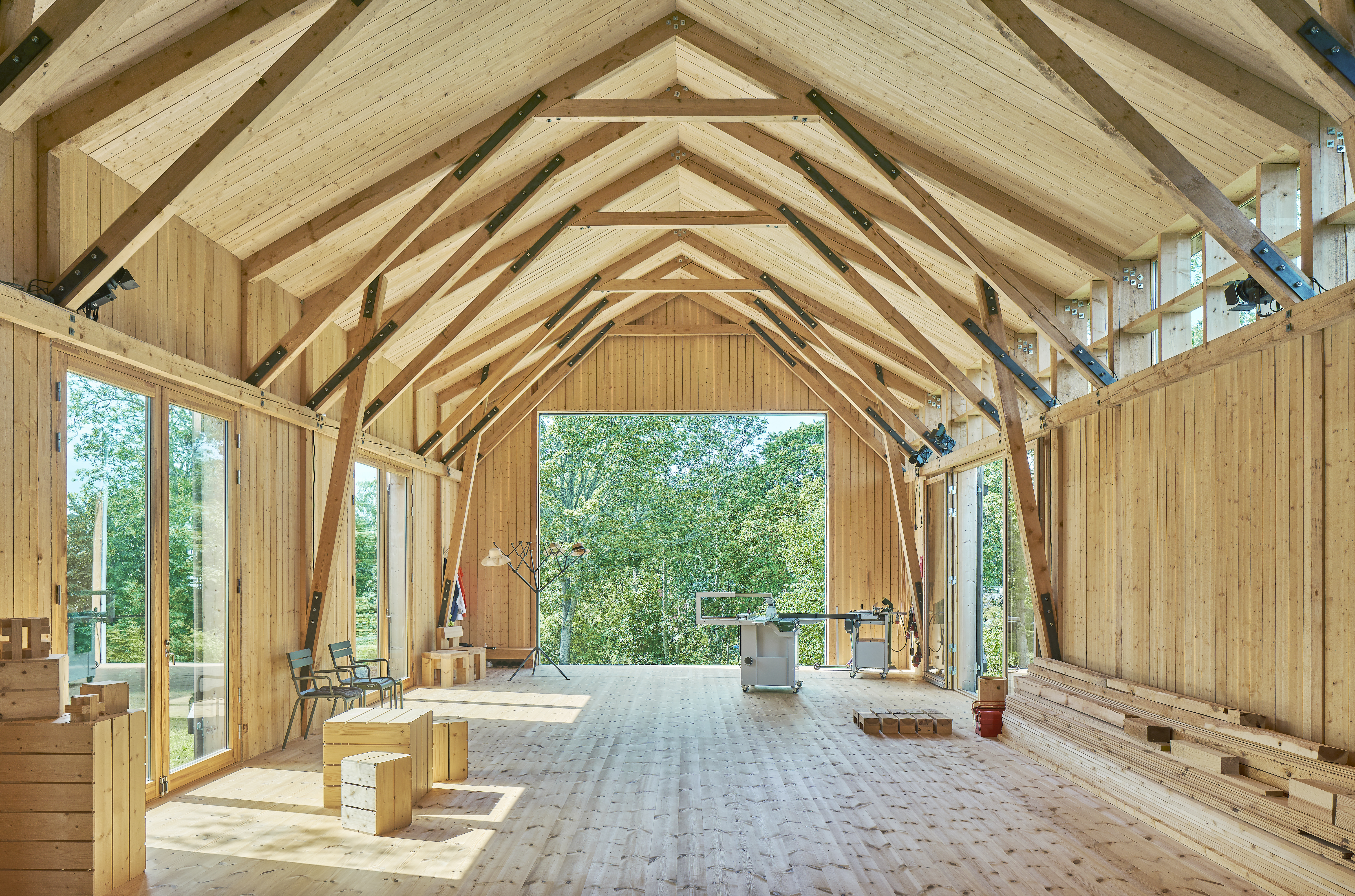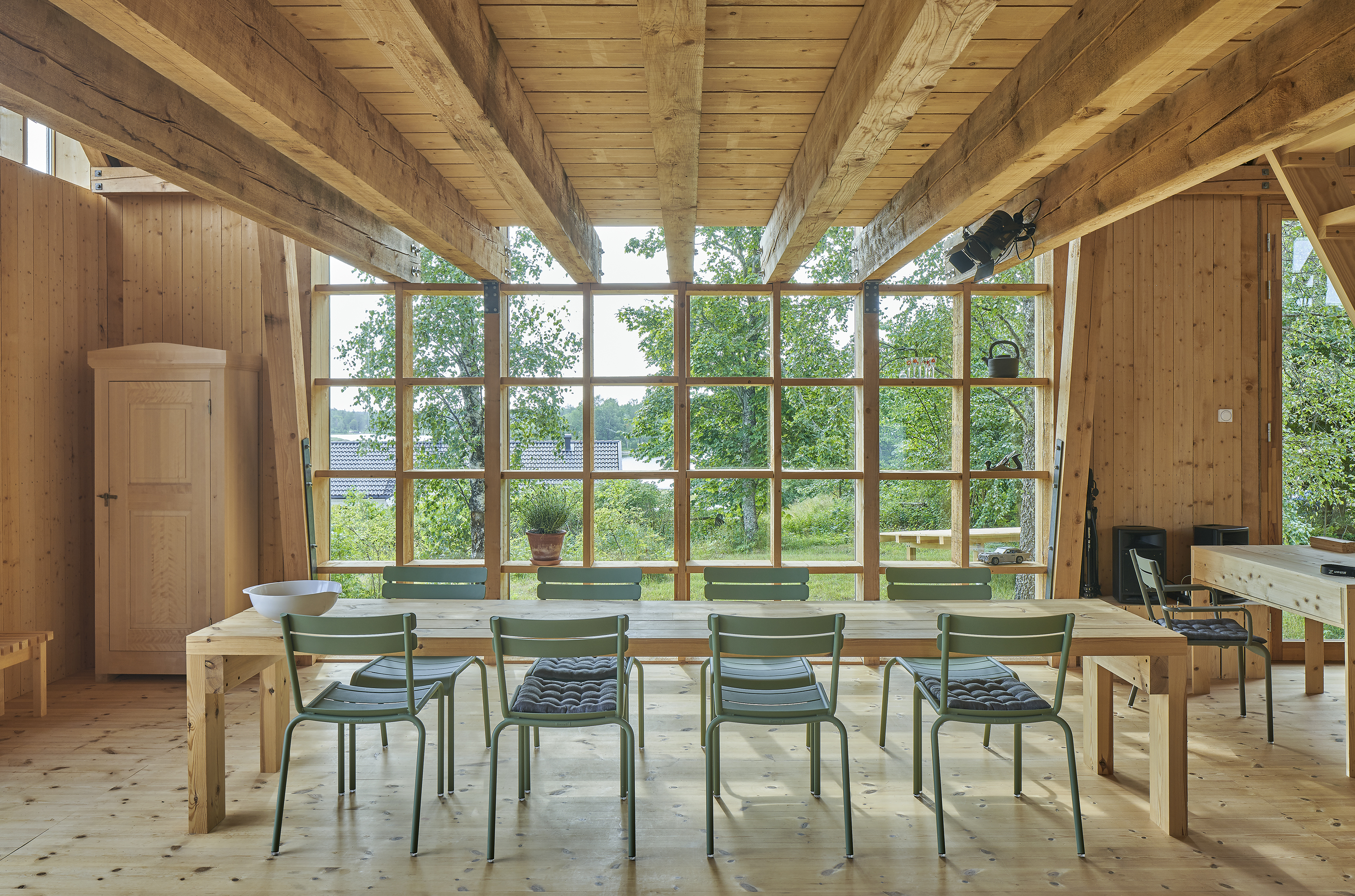 “I like to describe the space as a theatre that can be reconfigured to form different kinds of settings. It was also important to get the right relationship between inside and out. Opening up the oversized doors invites nature into the building,” says architect Anja Thedenius.
