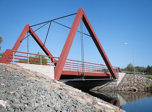 Wooden bridges are another example of the superior technical and economic potential of building in wood. A wooden bridge can be prefabricated, transported and installed on site in sections that are practically complete, with just the road paving to add.