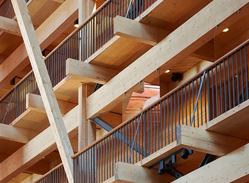 A multi-storey building in wood can be ready to move into just 10 weeks after the foundation slab has been cast, thanks to prefabricated modules that are craned into place and assembled together.