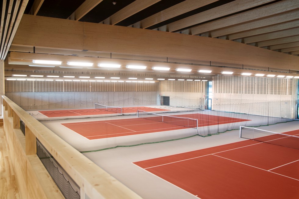 Södra Climate Arena in Växjö is a indoor tennis arena with a glulam post and beam structure by architect Kent Pedersen.