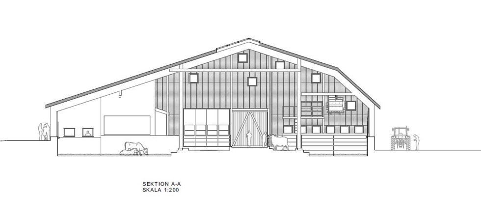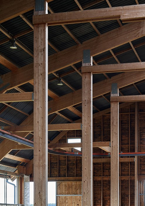 A word from the architect When working on a project where the main purpose is to safeguard function, cohesion, users and details and where the farm is an integral part of society, we wanted to use wood to highlight an important tradition in a new setting. The choice of timber as a material for both the structure and façade was an obvious one for both the architect and builders in their aim to reinforce and manifest Nibble Farm’s vision for the future of sustainable farming. All exposed wooden sections have been treated with heated linseed oil. Façades painted with ferrous sulphate with silver stain, copper vitriol and titanium white as additive.