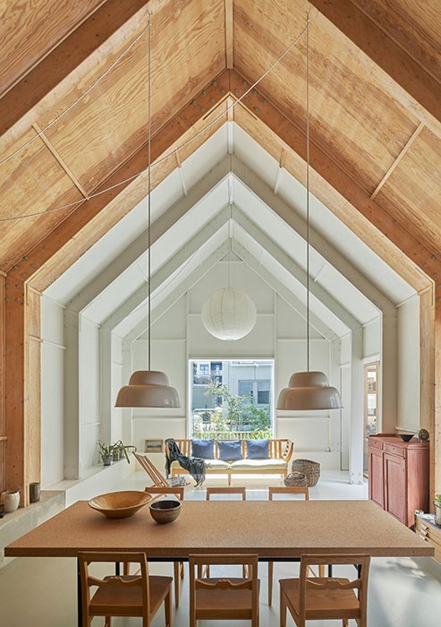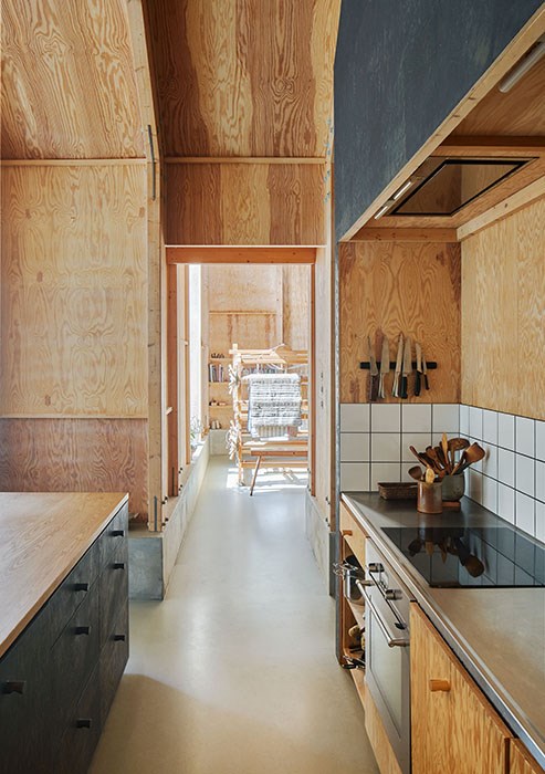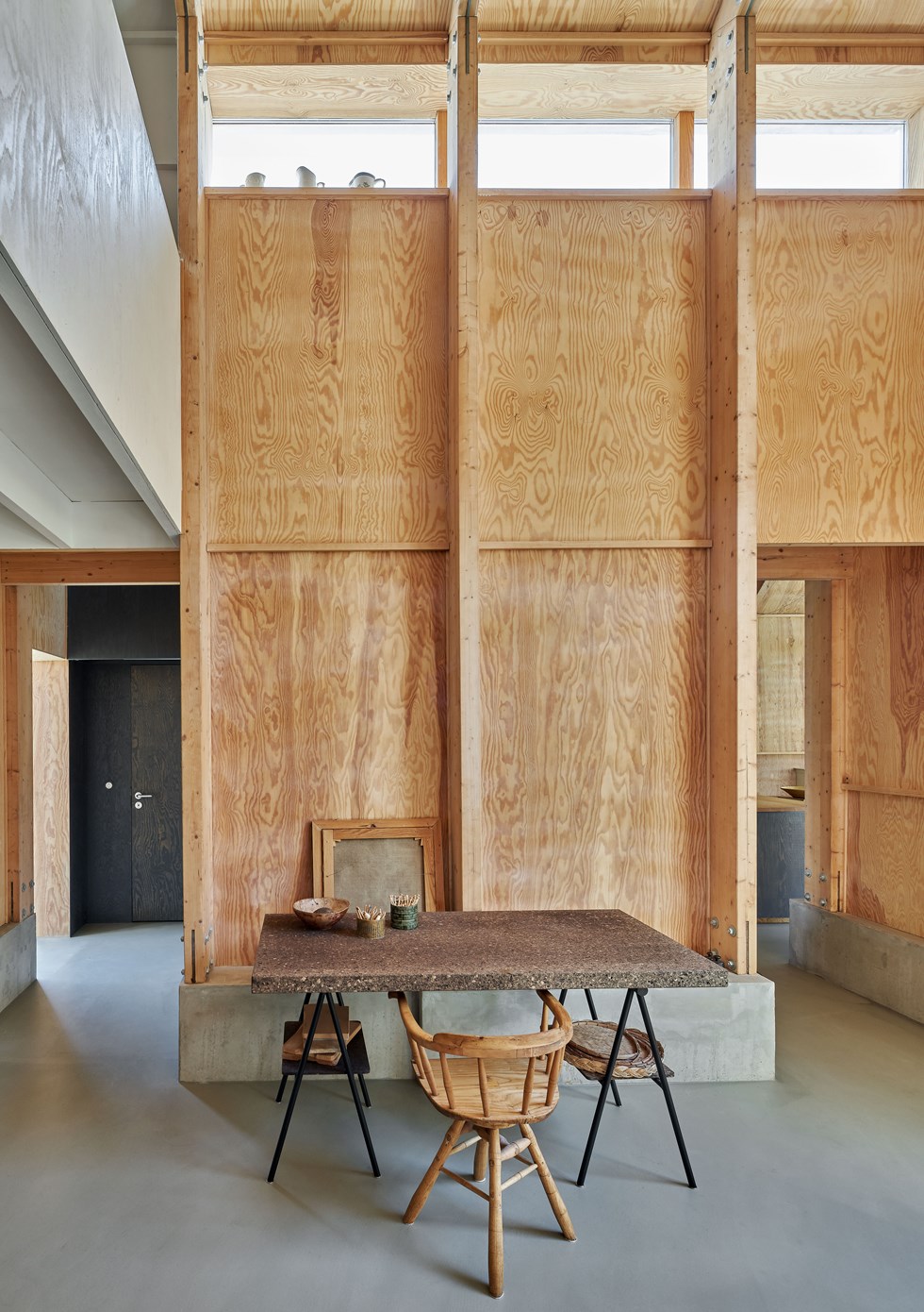 The materials and structure support this clarity, creating volumes and rooms as they go. The interior of the building is defined by the glulam frames, pine plywood and site-cast internal thresholds. Wood is set up in contrast to and interaction with concrete and steel, which only serves to make it stand out more. The details are playful and well executed, with great empathy. Natural light is beautifully harnessed to bring a dynamism to the rooms.